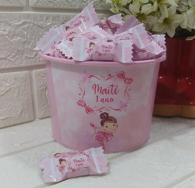 Contém 100 balas personalizadas com temas à sua escolha para abrilhantar a sua festa de aniversário! Temas infantis e adultos.